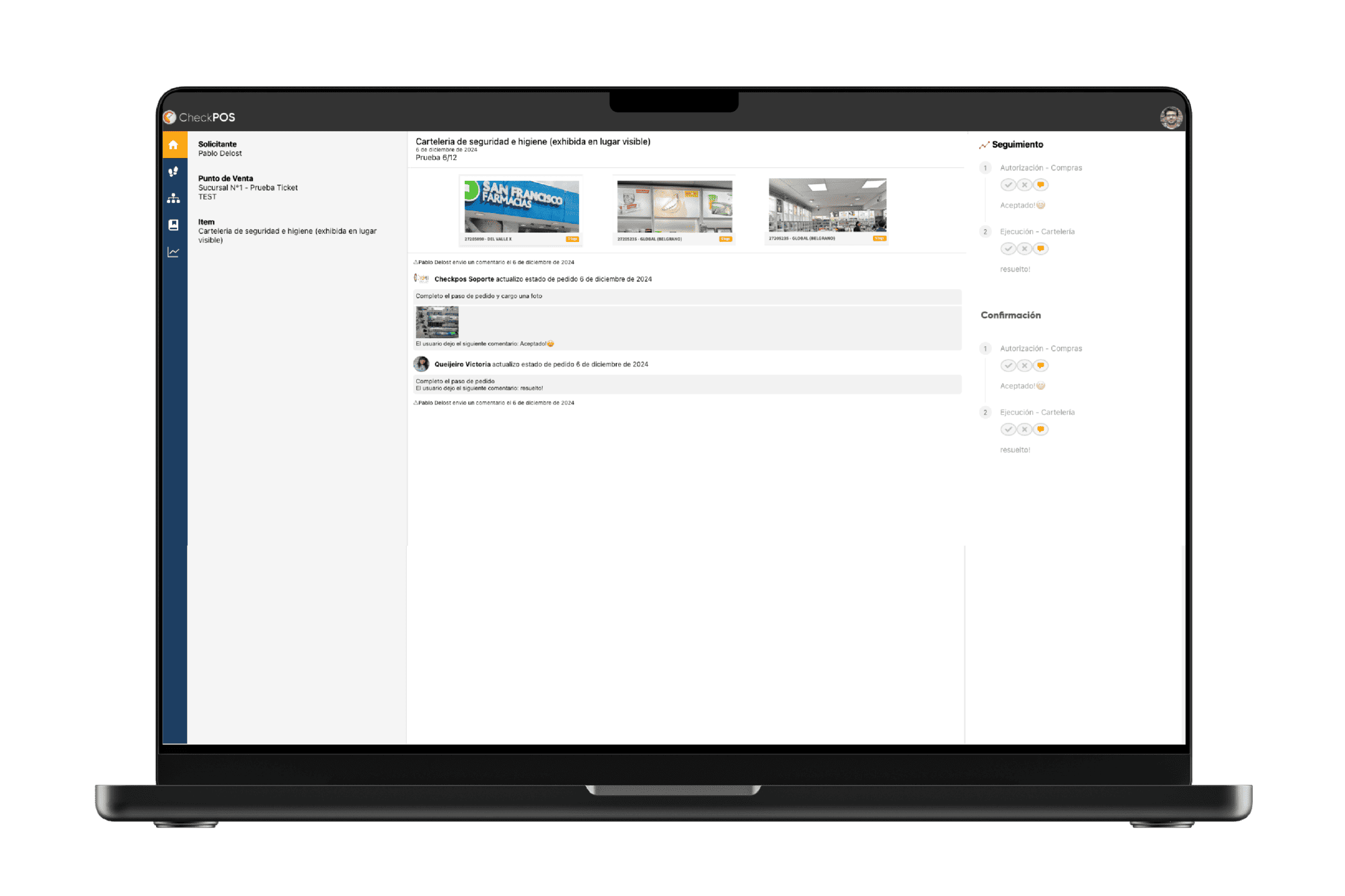 Gestión Integral: La herramienta se combina con Checkpos Mobile, permitiendo que las auditorías de imagen generen informes automáticos que se transforman en solicitudes dentro del sistema.